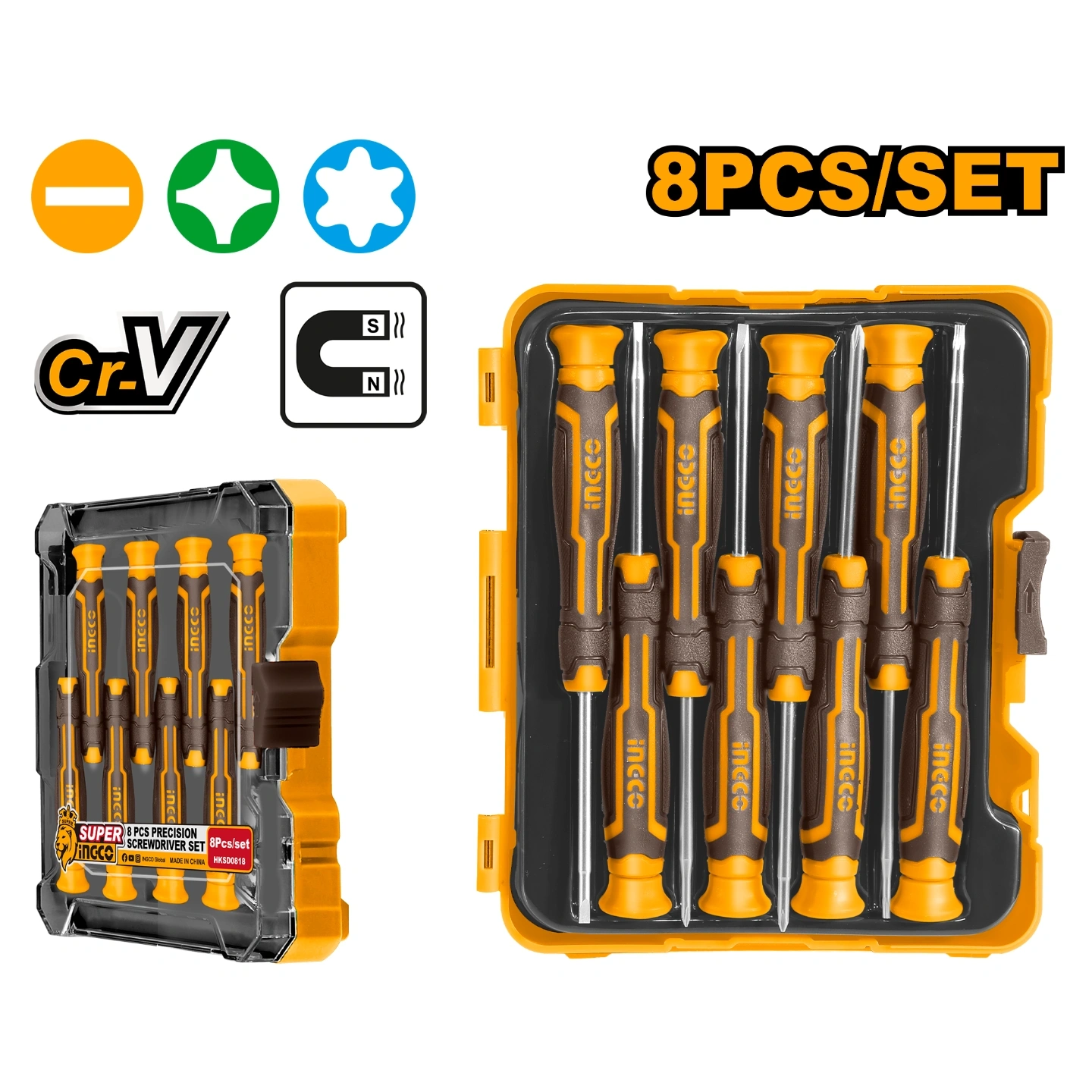 8PCS precision screwdriver setNew design handle,New plastic boxMaterial:CR-VSL2.0x50,SL2.5x50,SL3.0x50,PH00x50,PH000x50,PH0x50,T6x50,T8x50Material:CR-VComfort-grip handlePacked by plastic box