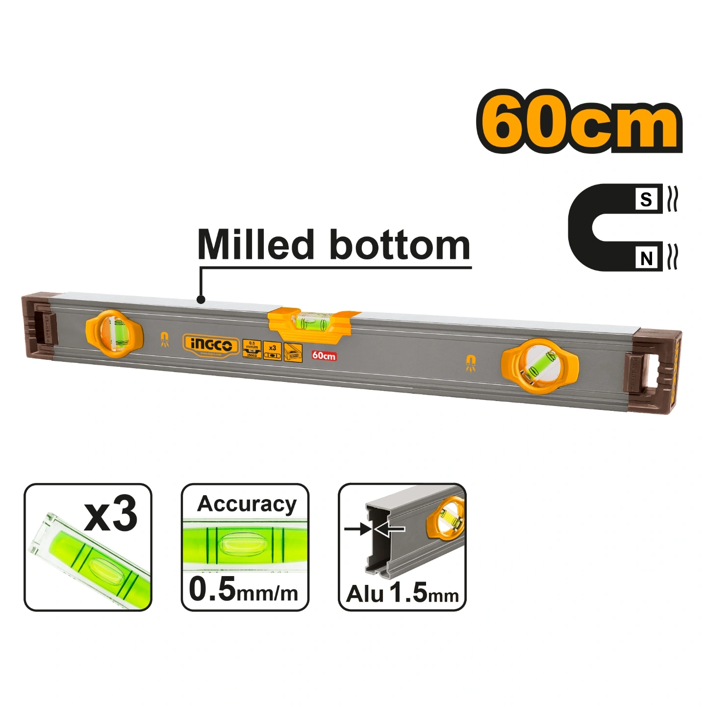 Length:60cmDouble side milled0.5mm/m accurate vialsThickness:1.5mm3 Pcs powerful magnetsDouble flat surfaces designPacked by color sleeve